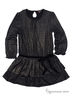 Оригинальное платье с золотым оттенком прекрасно впишется в гардероб Вашей маленькой модницы. Модель с округлым вырезом горловины, сзади застежка на пуговицу, юбка с воланами, на талии тонкий поясок. Смотрится очень стильно!