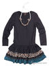 Прелестное платье, выполненное из комфортного нежного мягкого эластичного материала. Модель с округлым вырезом горловины и длинными рукавами и с заниженной талией. Юбка на резинке, состоит она из нескольких воланов контрастного цвета. Украшением и дополнением этой модели – деревянные бусы, декорированные контрастной тканью. Отличный вариант для детского гардероба!