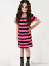 Платье прямого покроя из структурного кримплена. Имеет короткие рукава и округлый вырез горловины. Спереди платье оригинально присборено от ворота и имеет два врезных кармана. Восхитительный выбор для юных принцесс!