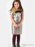 Платье прямого покроя из мягкой эластичной эко-кожи стального цвета. Имеет короткие рукава и округлый вырез горловины. Спереди платье оригинально присборено от ворота и имеет два врезных кармана. Восхитительный выбор для юных принцесс!
