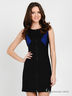Стильное платье приталенного силуэта из плотной слегка эластичной ткани. Округлый вырез горловины, декорировано контрастными вставками. Застегивается на двухстороннюю молнию по всей длине передней части. Отличный вариант на каждый день.