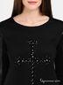 Оригинальное платье из плотного, приятного на ощупь, эластичного материала. Округлый вырез горловины. Длинные прямые рукава дополнены эффектными вставками. Спереди изделие декорировано оригинальной аппликацией. Неотрезная юбка-карандаш.