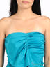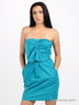 Стильное хлопковое платье без бретелек насыщенного цвета морской волны. Отрезной лиф присборен по краю и декорирован оригинальным воланом. Юбка тюльпан с большими втачными карманами. Застегивается на молнию сбоку.