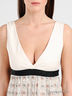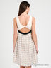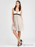 Приталенное платье с V-образным вырезом спереди и сзади. Втачной пояс контрастного цвета, юбка декорирована принтом, на спине оригинальная прорезь. В этом платье вы не останетесь незамеченной.