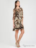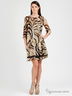 Воздушное платье приталенного кроя с круглым вырезом горловины и рукавом 3/4. Застегивается на пуговицы спереди, низ изделия дополнен воланом, на полочке простроченные складки. Декорировано оригинальным принтом. Придаст вашему образу женственности и романтичности.