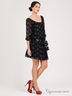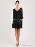 Праздничное платье с вырезом водопадом и рукавом 3/4. На спине V-образный вырез с перекрещивающимися тонкими лентами. Пояс завязывается ниже талии. Декорировано оригинальным принтом. В этом платье Вы будете неотразимы.