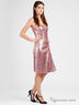 Яркое платье приталенного силуэта с круглым вырезом на широких бретелях. Выполнено из ткани, обильно расшитой пайетками. Передняя часть декорирована драпировкой со складками. Идеально подойдет для вечерних мероприятий.