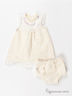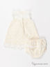 Нежное платье с трусиками для девочки. Округлый вырез горловины, короткие рукава. Сзади застежка на кнопки. Полочка украшена оригинальной вышивкой.