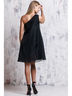 Легкое и элегантное платье свободного кроя на одно плечо.
