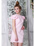 Нежное платье с воланами на рукавах. Застегивается на молнию на спине.