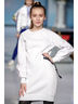Платье прямого кроя с длинным рукавом, круглым вырезом. Сбоку - декоративный элемент.