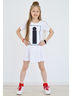 Платье полуприлегающего кроя с коротким рукавом, круглым вырезом. Спереди - принт.