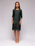 Платье измурудного цвета длины мини с имитацией кружева на подоле и рукавах
