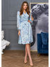 Лаконичные образы всегда остаются в тренде, но не стоит забывать и об интересных принтах, которые могут смотреться в разы привлекательнее однотонной цветовой палитры. Предлагаем использовать в своих образах мраморные расцветки, которые смогут обыграть Ваш look в более свежем и обновленном варианте. Отличным решением в Вашем гардеробе станет универсальное двухстороннее платье «Глория» с оригинальным принтом, в котором Вы почувствуете приход весны как нельзя точно. Первый вариант — более открытый, идет с вырезом на запах. В таком изделии Вы будете очень женственной и элегантной. Обратная сторона платья — сдержанный вариант, с круглым вырезом, что придаст образу скромности и нежности, а открытая спинка добавит нотку пикантности. Роскошное платье с юбкой полу-солнце, длинным объемным рукавом на резинке и разрезом по всей длине. Тот образ, который оценит истинная леди.