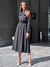Великолепное платье-миди с длинным рукавом на резинке станет прекрасным свежим обновлениев в Вашем гардеробе. Платье в сдержанном стиле, что делает Ваш образ скромным и женственным. Акцента добавляет завязка бантом на горловине и кружево по кокетке платья.
