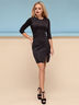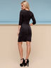 Сдержанное облегающее платье. Совершенства изделию придают небольшой разрез на горловине, декорированный пуговицами и разрез по переду изделия. Рукав реглан отлично гармонирует с геометрией изделия.