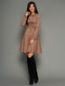 Кукольное платье из эко-замши обязательно станет наилучшим дополнением в Вашем гардеробе. Юбка полусолнце и утонченная завязка на горловине добавляет образу романтизма и нежности.