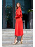 Прекрасное платье-миди с длинным свободным рукавом на манжете. Фасон изделия довольно сдержан, но при этом смотрится очень женственно и элегантно. Талия фиксируется съемным поясом.
