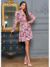 Нежное короткое платье свободного силуэта с цветочным принтом. Легкость и воздушность этой модели подарит Вам прекрасное весеннее настроение. V-образный вырез на горловине не только украшает модель, но и обращает внимание на грудь, делает зрительно длиннее шею, открывая ее. Крой и длина платья поможет акцентировать внимание не только на достоинствах фигуры, но и на красоте лица, шеи и ног. Талию подчеркнет изящный поясок в цвет платья, длинные свободные рукава придадут образу элегантности и женственности. Идеальное платья для вечеринки или выхода в свет.