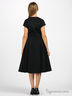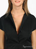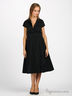 Милое женское платье из плотного материала атласной фактуры. Лиф со слегка завышенной линией талии. На полочке глубокий разрез с нахлестом, который можно трансформировать в воротник с лацканами. Юбка расклешенная, в складку. Сбоку короткая застежка-молния.