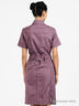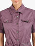 Детали: отложной воротник на небольшой стойке, короткие рукава с небольшим хлястиком, застежка на пуговицах, два накладных кармашка с клапаном на пуговице, по поясу кулиска, сзади изделие декорировано металлической молнией, два накладных кармашка на клапане с кнопкой.