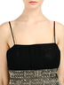 Детали: застежка на молнию, отрезной лиф декорирован плиссе и дополнен плотными чашечками, широкий пояс декорирован пайетками и бисером, юбка дополнена сетчатой тканью и декорирована простроченным плиссе