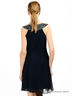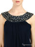 Детали: застежка на молнию и на три пуговицы на спине, округлый вырез горловины декорирован стразами и бисером