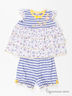 Летнее платьице для девочки расклешенного силуэта. Округлый вырез горловины, короткие рукава. Оригинальный принт и вышивка.