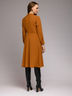 Платье карамельного цвета длины миди с длинными рукавами и поясом