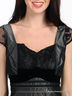 Детали: застежка на молнию на левом боку, пояс дополнен бархатистой лентой, сзади небольшой разрез.