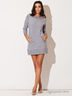 Великолепное платье, выполненное из комфортного материала. Изделие с округлым вырезом горловины, рукавами 3/4, дополнено карманом "кенгуру". Приталенный силуэт. Отличный вариант для женского гардероба.