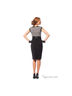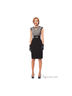 Платье приталенного силуэта без рукавов из комбинированных материалов. Округлый вырез горловины украшен элегантными складками. Низ однотонный, верх клетчатого узора. Талию подчеркивает контрастная вставка.