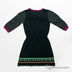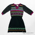Теплое, мягкое вязаное платье приталенного силуэта. Округлый вырез горловины дополнен пуговицами с петлями, которые, при желании можно застегнуть. Рукав три четверти. Платье декорировано яркими рисунками и пайетками.