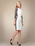 Платье женское, прилегающего силуэта, длиной до линии колена, рукава- втачные, длинные, комбинированное, два цвета. В среднем шве спинки декоративная тесьма-молния. Платье дополняет ремень.