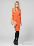 Платье женское, полуприлегающего силуэта, длиной до линии колена, отрезное по талии, рукава- втачные ¾. Верхняя часть переда ассиметричная, с нагрудными и талиевыми вытачками, с хлястиками, на левом хлястике пришита пряжка. Спинка со средним швом.