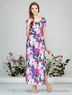 Красивое, женственное макси-платье с роскошным принтом цветущей сирени. Спинка открытая с завязками. В комплект входит поясок. Сбоку - разрез.