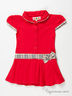 Яркое платье прямого силуэта. Стояче-отложной ворот. Застежка спереди на пуговицы. Короткие рукава-фонарики. Отрезной пояс декорирован изящным бантиком. Расклешенная юбка с заложенными односторонними складками. Ворот, рукава и пояс с бантиком выполнены из контрастной ткани.
