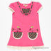 Элегантное детское платье с округлым вырезом горловины и короткими рукавами, изделие украшено оборками, спереди два накладных кармана.