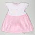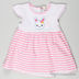 Легкое детское платье, округлый вырез горловины, короткие рукава, застежка на пуговицы, расклешенный низ.