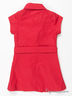 Нарядное платьице выполнено из плотного сатина. Отложной воротник, застежка на пуговицы, короткий прямой рукав, в шлевки продет пояс, два накладных кармана.