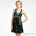 Отрезное платье с расклешенной юбкой из плотного хлопка. V-образный вырез горловины, переходящий в бретельки, застегивающиеся на шее на пуговицы. Отрезной лиф. Открытая спина. Застегивается на молнию на спинке. Горловина и пояс выполнены из атласного материала.