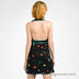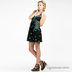 Отрезное платье с расклешенной юбкой из плотного хлопка. V-образный вырез горловины, переходящий в бретельки, застегивающиеся на шее на пуговицы. Отрезной лиф. Открытая спина. Застегивается на молнию на спинке. Горловина и пояс выполнены из атласного материала.