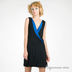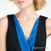 Отрезное платье с расклешенным силуэтом из нежного на ощупь материала. Полочки с нахлестом, переходящие в бретельки на спине. Пояс и низ изделия посажены на резинку. Полочка декорирована атласными вставками.