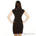 Стильное платье-футляр из вязаного трикотажа с круглым вырезом горловины и цельнокроенными короткими рукавами. Вырез горловины декорирован вязанием "косы".