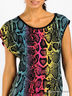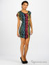 Оригинальное платье прямого кроя добавит в ваш гардероб ярких красок. Тонкая, приятная на ощупь трикотажная ткань. Глубокий округлый вырез горловины. Низ изделия декорирован набивным рисунком со стразами. Длина регулируется за счет трикотажных лент на подоле платья.