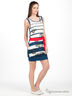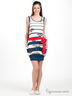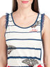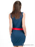 Детали: круглый вырез; оригинальные аппликации; низ изделия дополнен трикотажной лентой; съемный пояс контрастного цвета, пристегивается на пуговицу; два кармана; пройма дополнена кружевными вставками