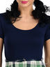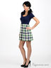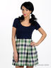 Детали: округлый вырез горловины, короткий рукав, по боковым швам пришиты шлевки, вставлен ремешок, юбка в складку