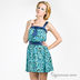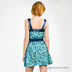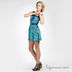 Отрезное креп-сатиновое платье с расклешенной юбкой. Широкие бретельки. Отрезной верх лифа и отрезной пояс. Спереди украшен коротким галстуком на булавке. Застегивается сбоку на молнию.