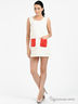 Детали: округлый вырез горловины, лямки, скрытая застежка на молнию на спинке, два контрастных передних кармана