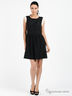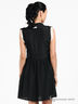 Детали: округлый вырез горловины, короткий рукав с контрастным манжетом, застежка на скрытую молнию в левом боковом шве, отрезной пояс, складки